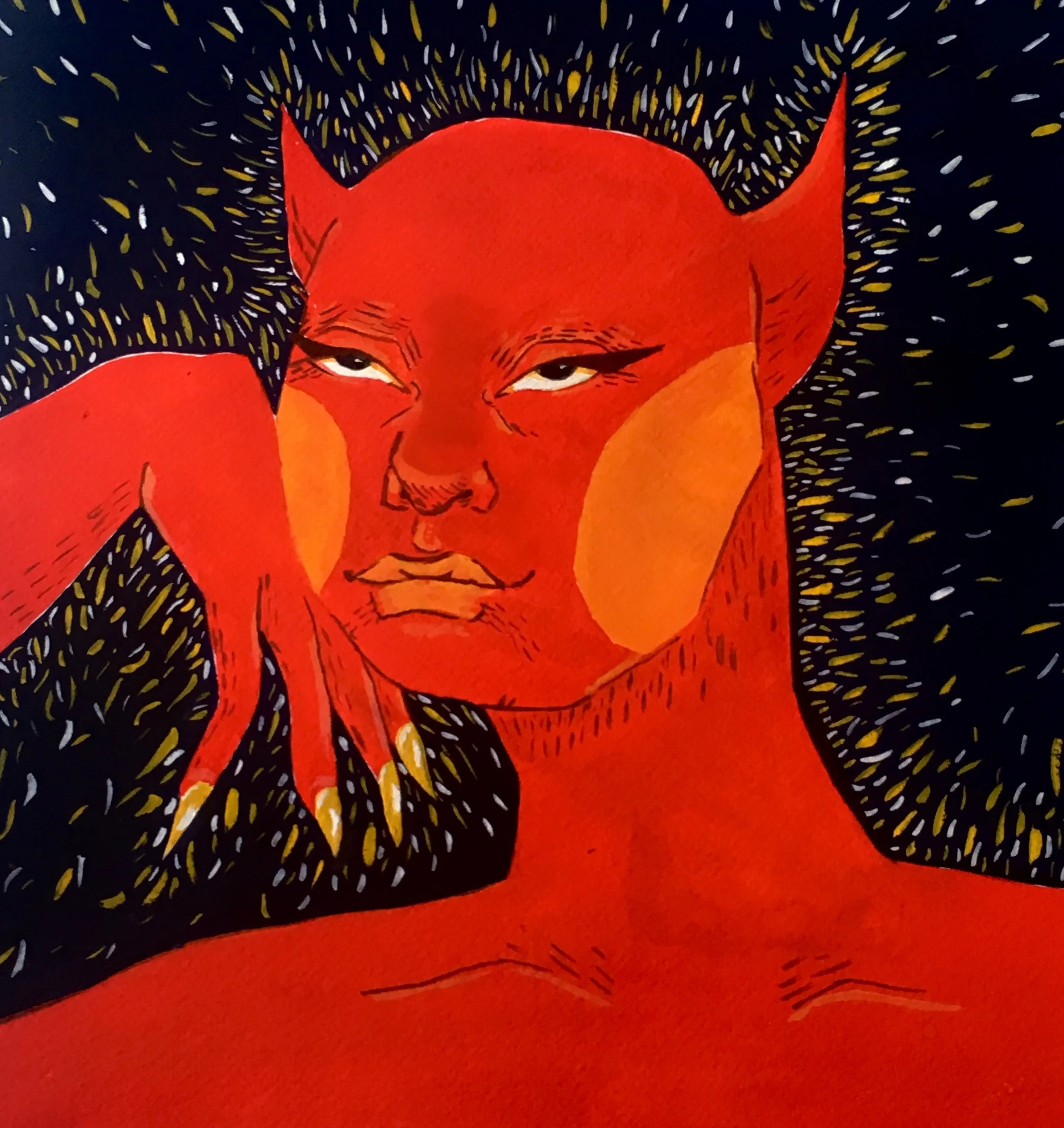 “I would describe my art as a stylized exploration of my life. I explore topics of gender, queerness, privilege, mental health and perception of self. Along with these topics, much of my work are recreations of dreams I've had. My preferred mediums include gouache, sumi ink, clay and pen.”